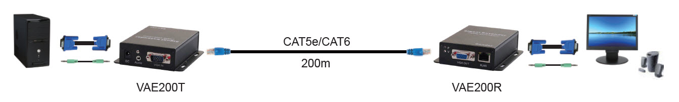 適合應用於需將 (VGA+Audio ) 影音訊號延長或同步的環境使用。