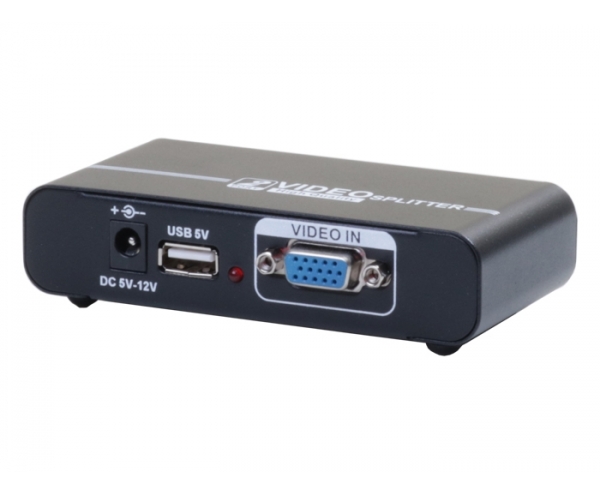 這一款 VGA 視訊同步分配器,能將輸入的 VGA 訊號,同步輸出分配到 2 台顯示器上播放,