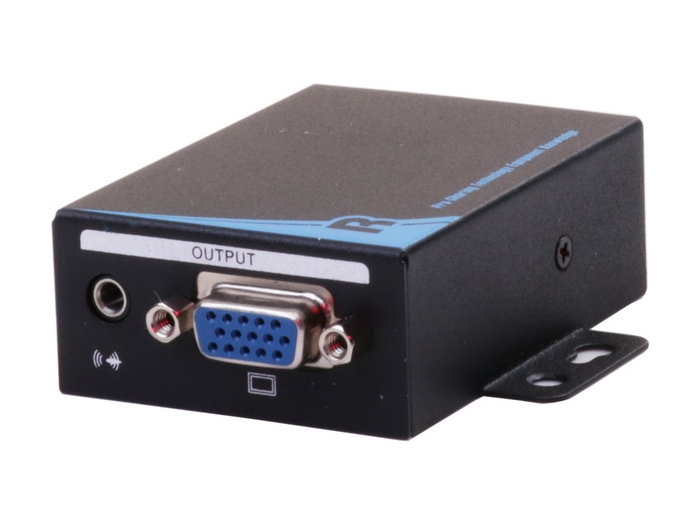 ● 傳送器與接收器之間,使用一條 CAT.5/5E 纜線作連接,即可將 VGA+Audio 訊號做延長,最遠距離可達 100 公尺。