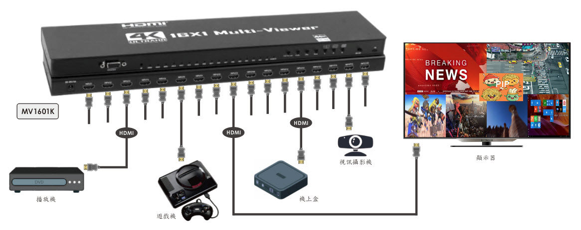 | 規格 | 16x1 HDMI 畫面分割處理器 | |