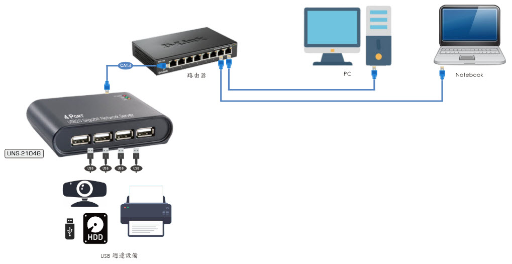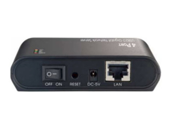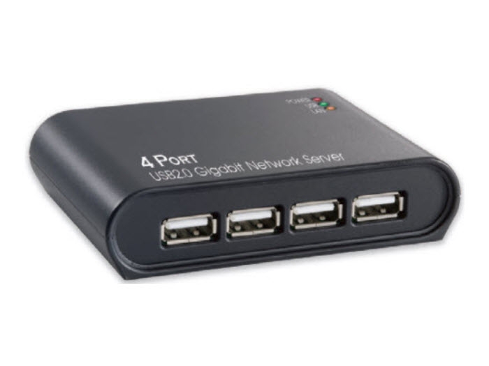 ● 可讓 2 台 PC 透過網路來共享 4 個 USB 週邊設備。